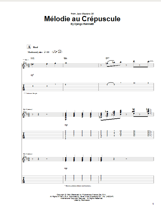 Download or print Django Reinhardt Melodie Au Crepuscule sheet music, chords and digital score arranged for Guitar Tab. This Jazz score includes 13 page(s).