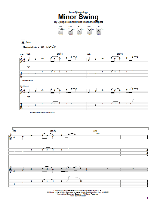 Download or print Django Reinhardt Minor Swing sheet music, chords and digital score arranged for Guitar Tab. This Jazz score includes 10 page(s).