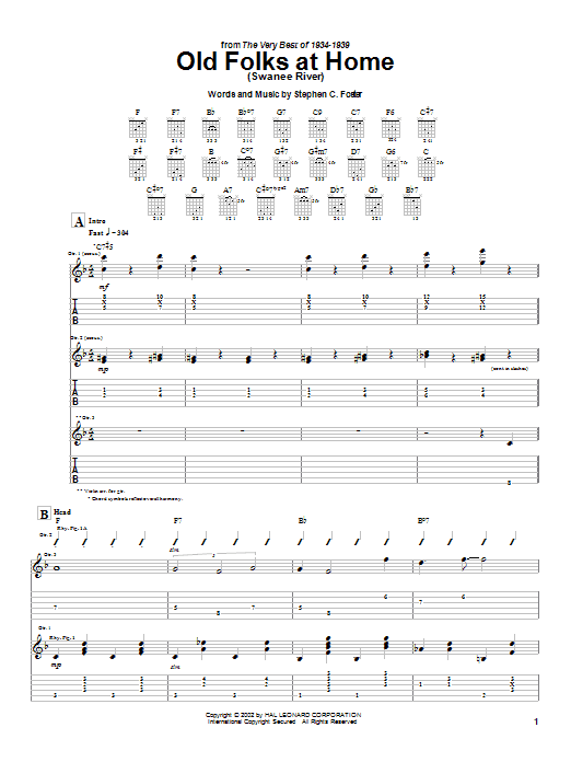 Download or print Django Reinhardt Old Folks At Home (Swanee River) sheet music, chords and digital score arranged for Guitar Tab. This Jazz score includes 13 page(s).