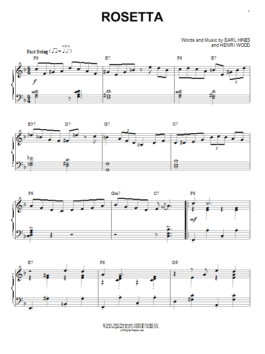 Download or print Django Reinhardt Rosetta (arr. Brent Edstrom) sheet music, chords and digital score arranged for Piano Solo. This Jazz score includes 5 page(s).