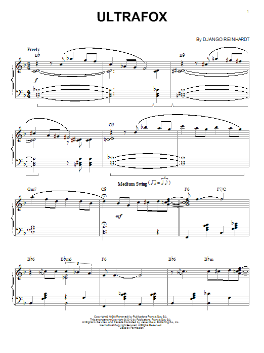 Download or print Django Reinhardt Ultrafox (arr. Brent Edstrom) sheet music, chords and digital score arranged for Piano Solo. This Jazz score includes 6 page(s).