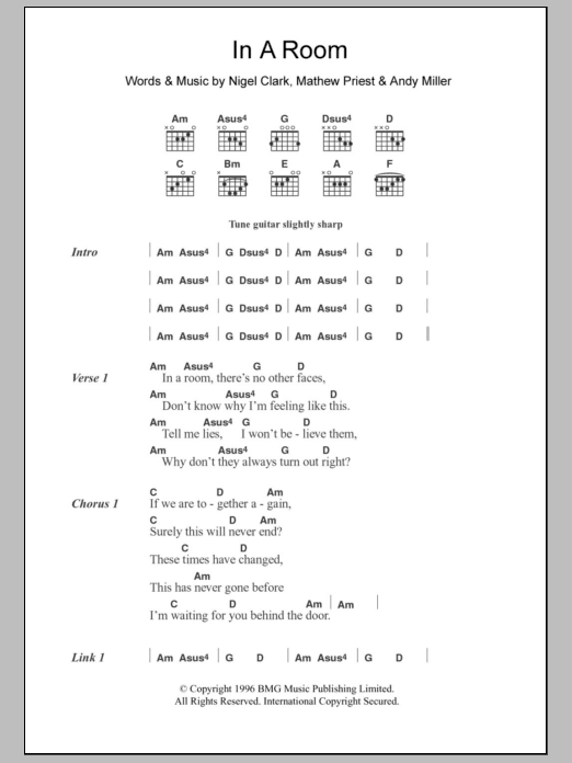 Download or print Dodgy In A Room sheet music, chords and digital score arranged for Guitar Chords/Lyrics. This Rock score includes 3 page(s).