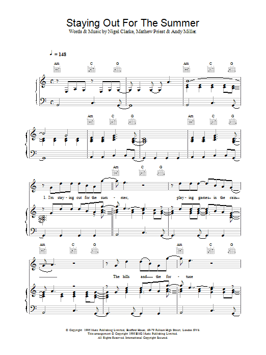 Download or print Dodgy Staying Out For The Summer sheet music, chords and digital score arranged for Piano, Vocal & Guitar Chords. This Alternative score includes 6 page(s).