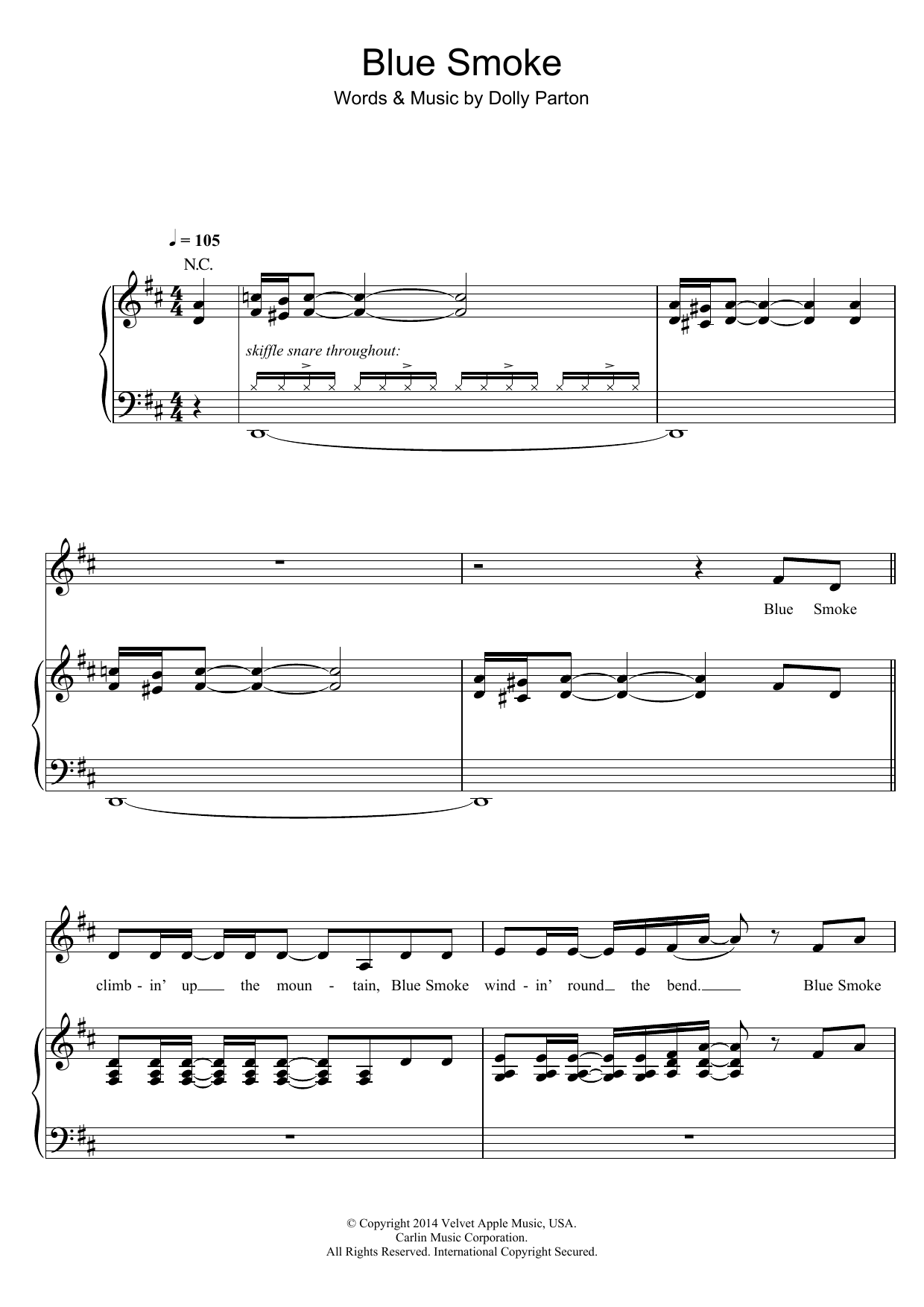 Download or print Dolly Parton Blue Smoke sheet music, chords and digital score arranged for Piano, Vocal & Guitar Chords. This Country score includes 10 page(s).