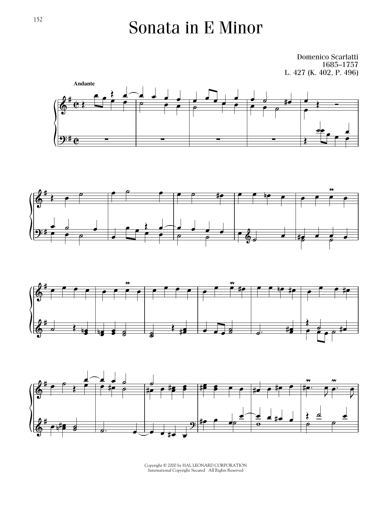 Download or print Domenico Scarlatti Sonata In E Minor, K. 402 sheet music, chords and digital score arranged for Piano Solo. This Classical score includes 6 page(s).