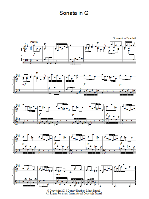 Download or print Domenico Scarlatti Sonata In G Major sheet music, chords and digital score arranged for Piano Solo. This Classical score includes 2 page(s).