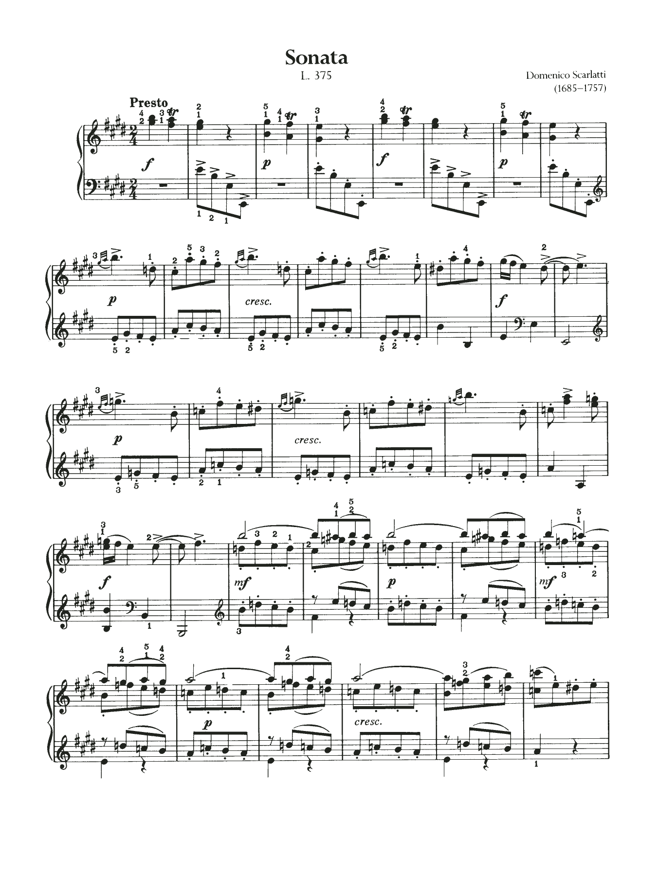 Download or print Domenico Scarlatti Sonata, L. 375 sheet music, chords and digital score arranged for Piano Solo. This Classical score includes 3 page(s).