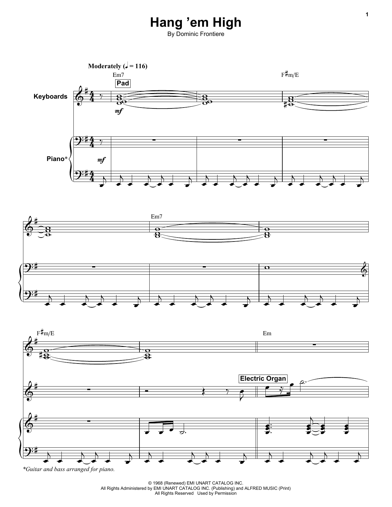 Download or print Dominic Frontiere Hang 'Em High sheet music, chords and digital score arranged for Keyboard Transcription. This Pop score includes 9 page(s).