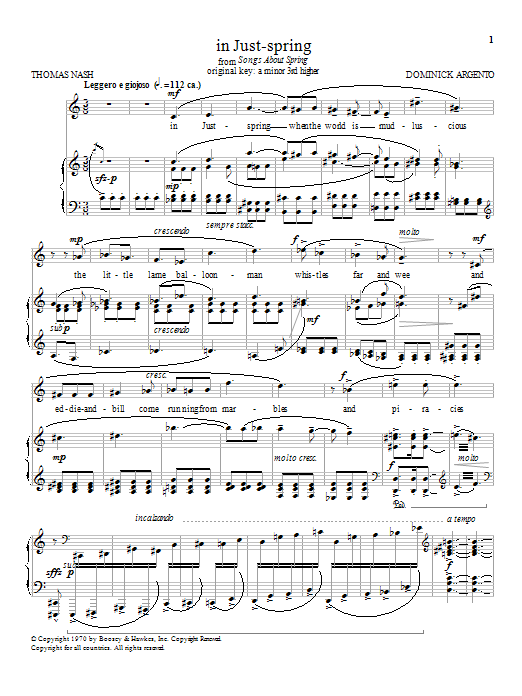Download or print Dominick Argento in Just-spring sheet music, chords and digital score arranged for Piano & Vocal. This Classical score includes 3 page(s).