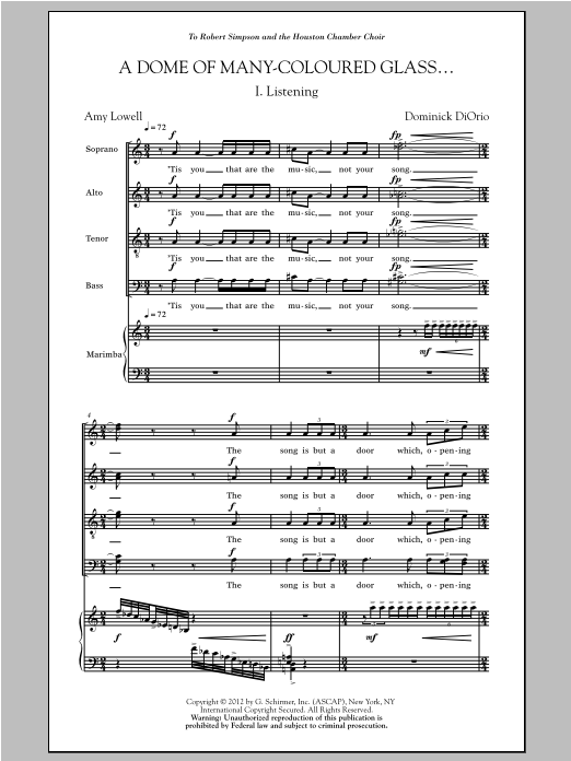 Download or print Dominick DiOrio A Dome Of Many-Coloured Glass sheet music, chords and digital score arranged for SATB Choir. This Classical score includes 67 page(s).