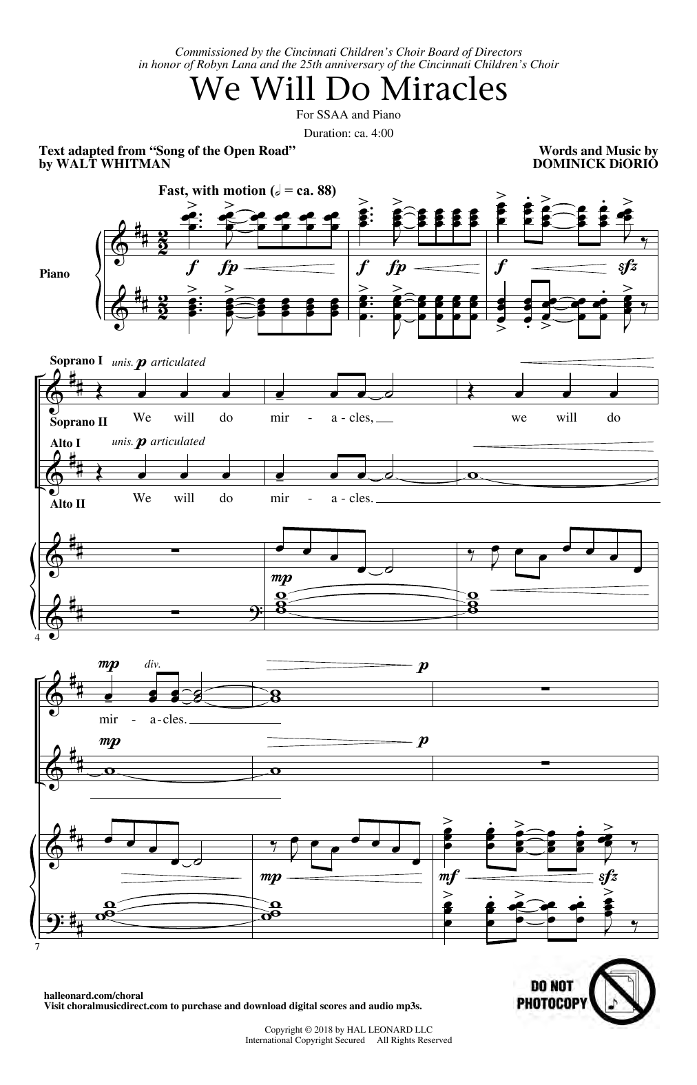 Download or print Dominick DiOrio We Will Do Miracles sheet music, chords and digital score arranged for SSA Choir. This Concert score includes 19 page(s).