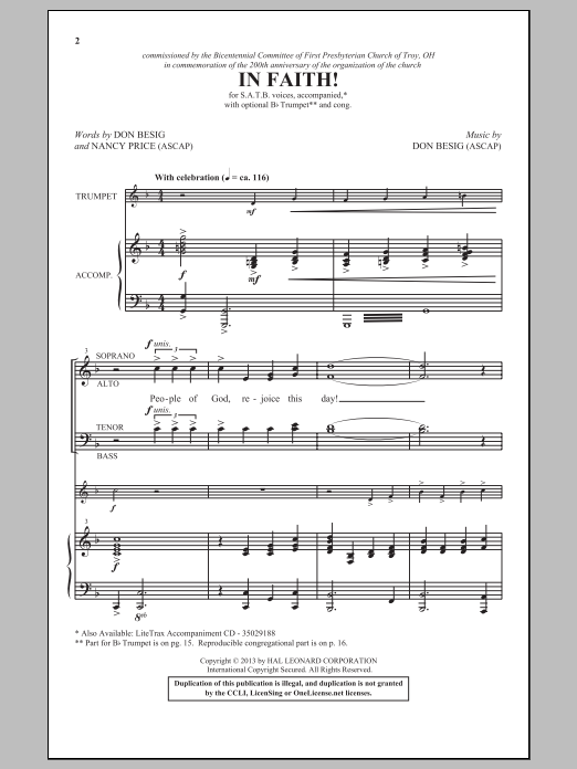Download or print Don Besig In Faith! sheet music, chords and digital score arranged for SATB Choir. This Sacred score includes 3 page(s).