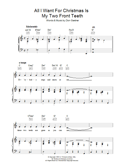 Quick facts All I Want For Christmas Is My Two Front Teeth about digital sheet music