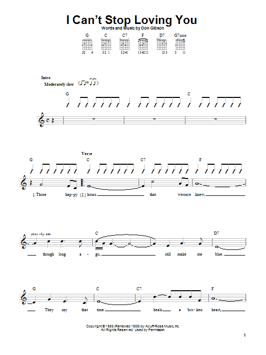 Download or print Don Gibson I Can't Stop Loving You sheet music, chords and digital score arranged for Easy Guitar Tab. This Country score includes 2 page(s).