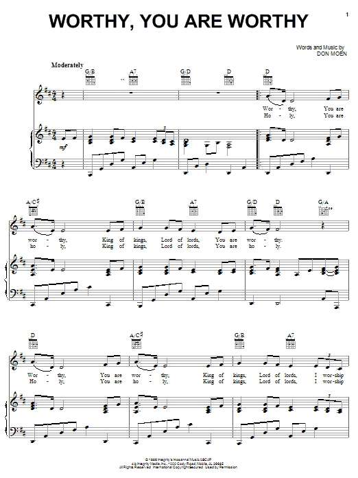 Download or print Don Moen Worthy, You Are Worthy sheet music, chords and digital score arranged for ChordBuddy. This Christian score includes 1 page(s).