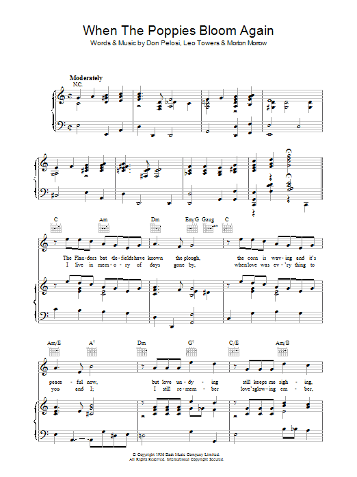 Download or print Vera Lynn When The Poppies Bloom Again sheet music, chords and digital score arranged for Piano, Vocal & Guitar Chords. This Pop score includes 4 page(s).
