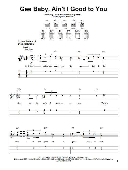 Download or print Nat King Cole Trio Gee Baby, Ain't I Good To You sheet music, chords and digital score arranged for Easy Guitar Tab. This Blues score includes 2 page(s).