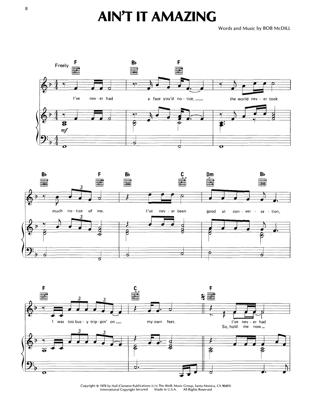 Download or print Don Williams Ain't It Amazing sheet music, chords and digital score arranged for Piano, Vocal & Guitar Chords (Right-Hand Melody). This Country score includes 3 page(s).