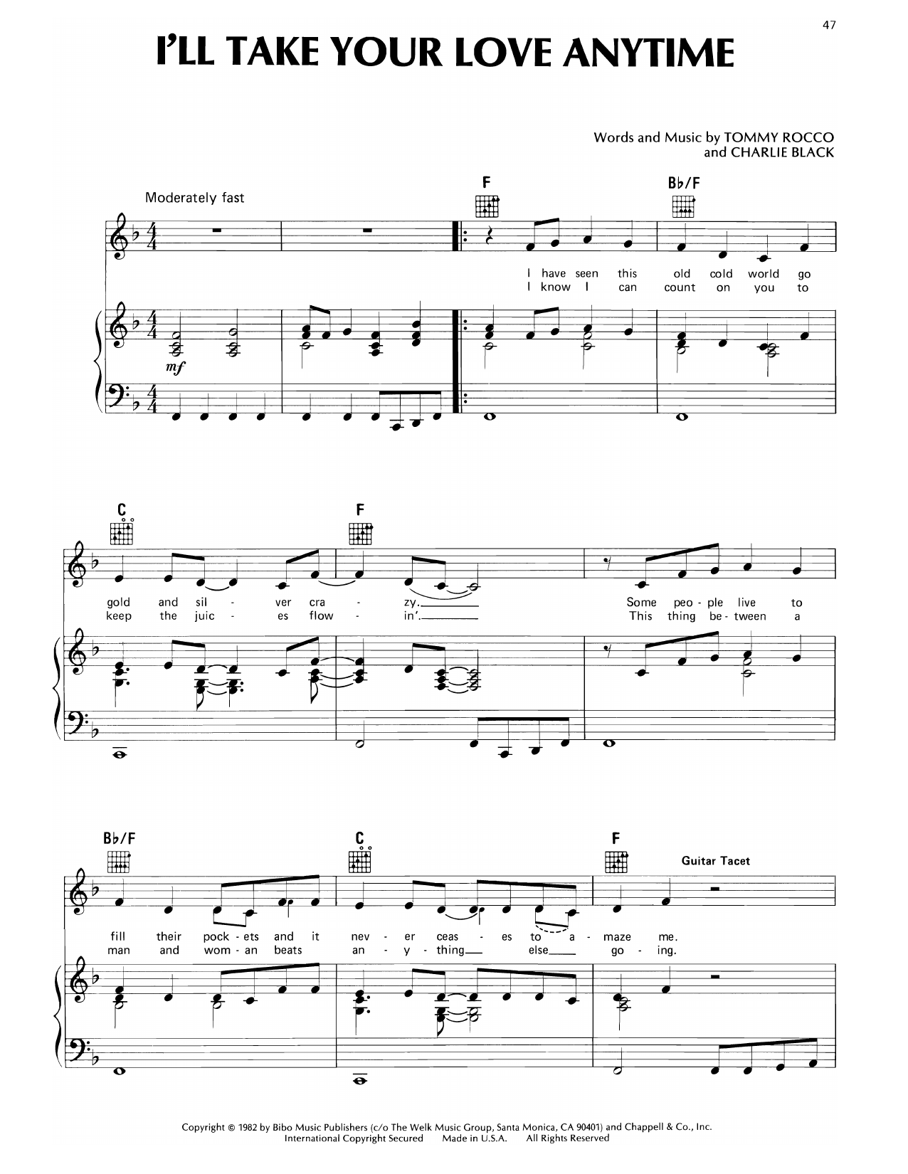 Quick facts I'll Take Your Love Anytime about digital sheet music