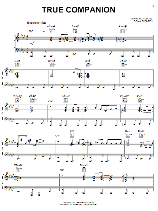 Download or print Steely Dan True Companion sheet music, chords and digital score arranged for Piano, Vocal & Guitar Chords (Right-Hand Melody). This Pop score includes 6 page(s).