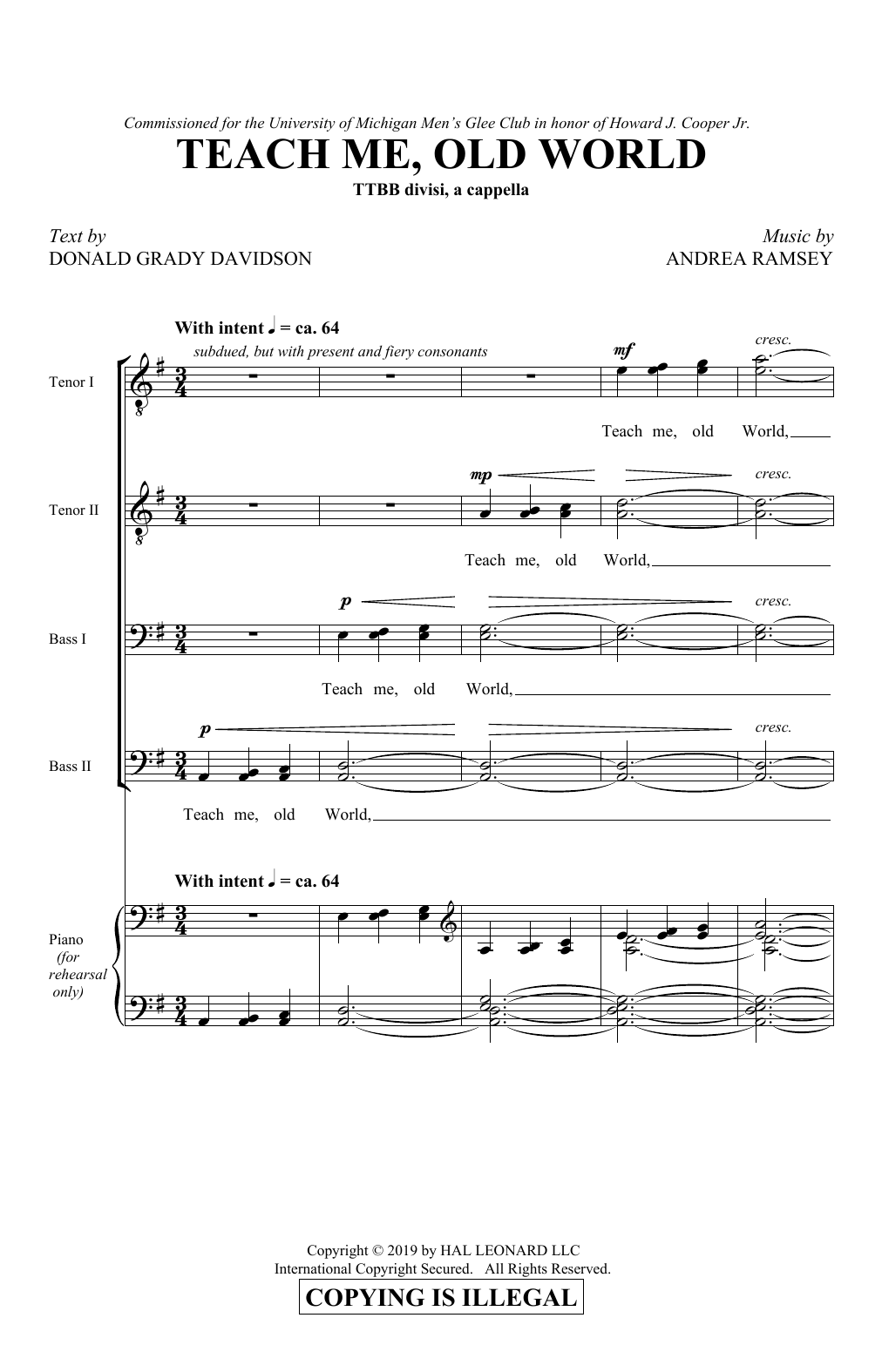 Download or print Donald Grady Davidson and Andrea Ramsey Teach Me, Old World sheet music, chords and digital score arranged for TTBB Choir. This Concert score includes 10 page(s).