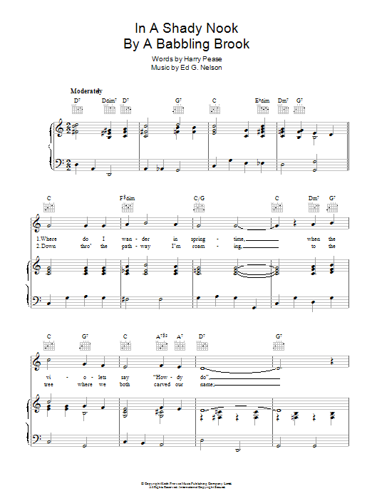 Download or print Donald Peers In A Shady Nook By A Babbling Brook sheet music, chords and digital score arranged for Piano, Vocal & Guitar Chords. This Standards score includes 4 page(s).