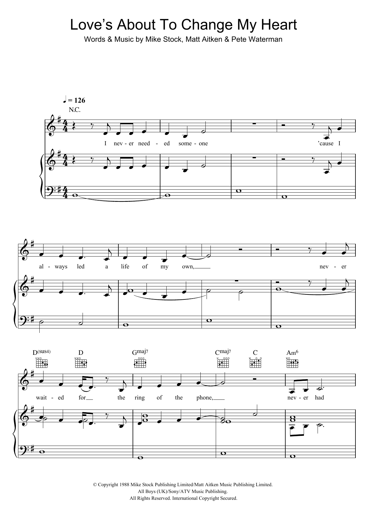 Download or print Donna Summer Love's About To Change My Heart sheet music, chords and digital score arranged for Piano, Vocal & Guitar Chords. This Disco score includes 5 page(s).