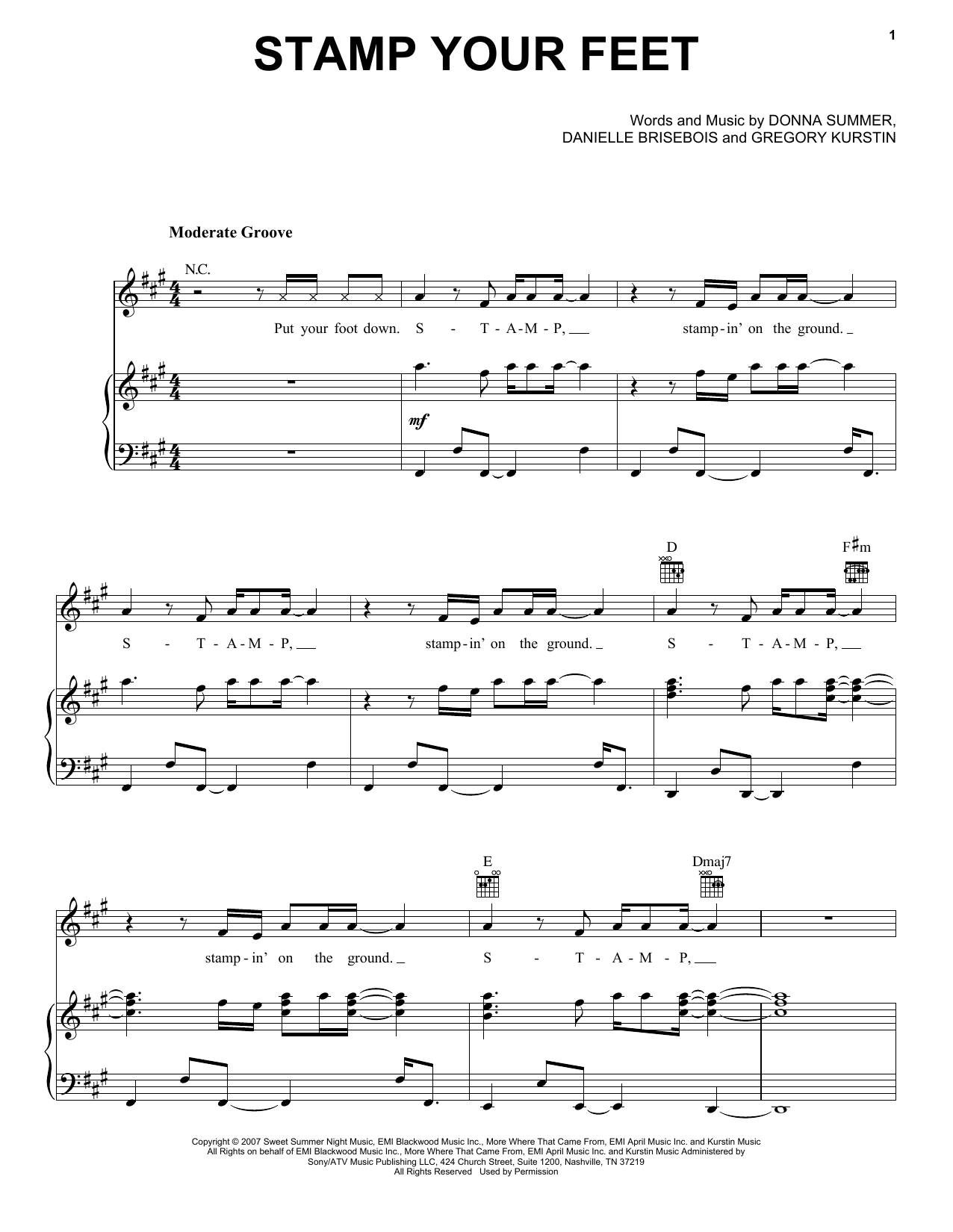 Download or print Donna Summer Stamp Your Feet sheet music, chords and digital score arranged for Piano, Vocal & Guitar Chords (Right-Hand Melody). This Disco score includes 8 page(s).