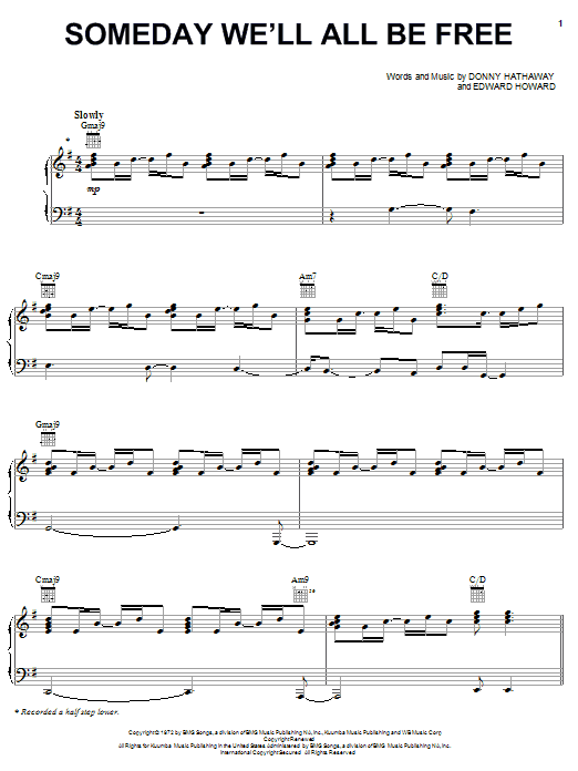 Download or print Donny Hathaway Someday We'll All Be Free sheet music, chords and digital score arranged for Piano, Vocal & Guitar Chords (Right-Hand Melody). This Film/TV score includes 6 page(s).