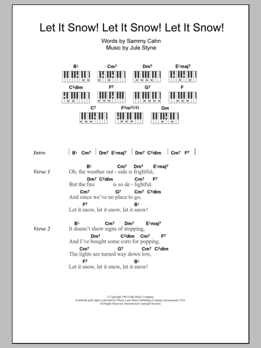 Download or print Doris Day Let It Snow! Let It Snow! Let It Snow! sheet music, chords and digital score arranged for Piano, Vocal & Guitar Chords. This Christmas score includes 2 page(s).