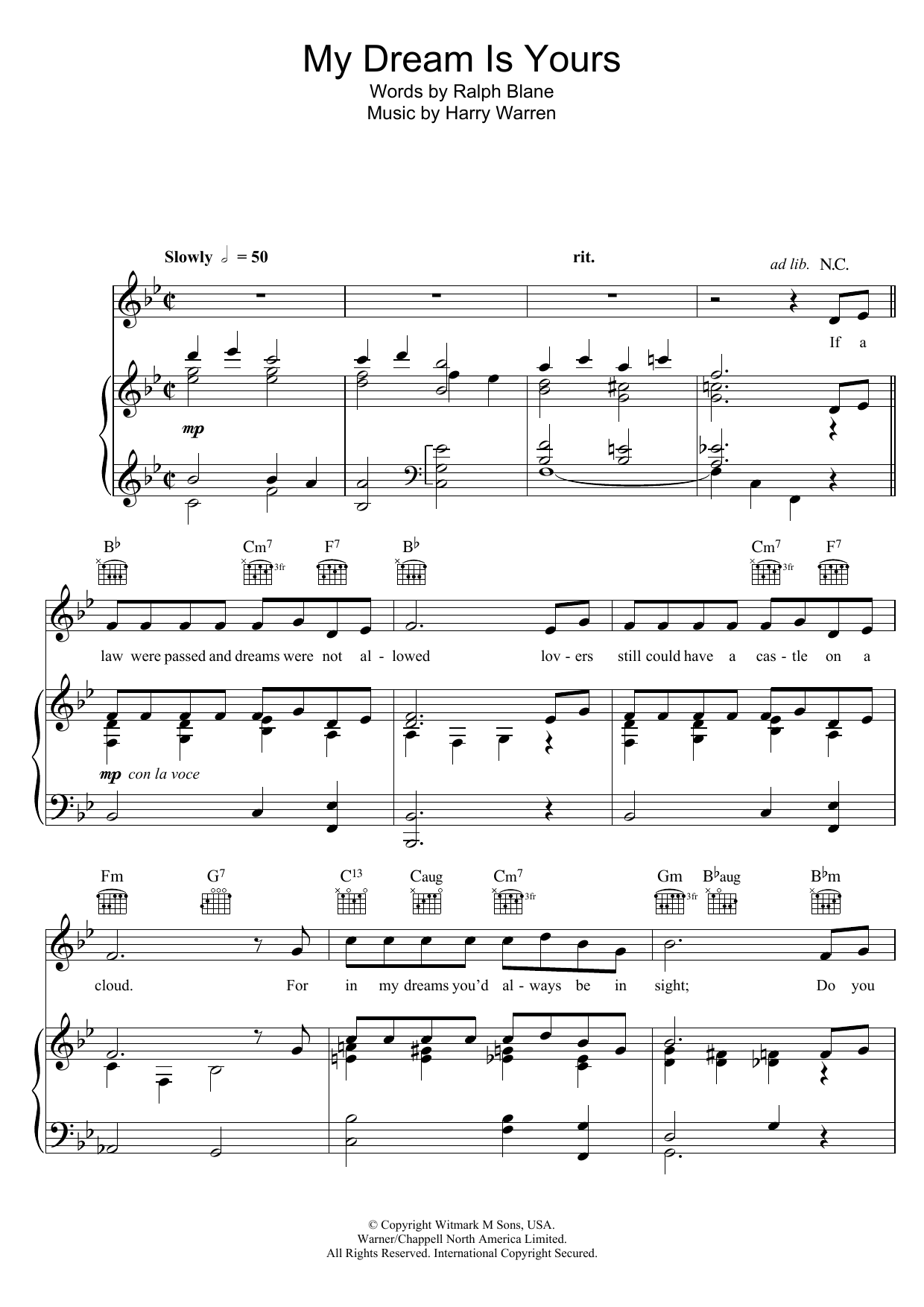 Download or print Doris Day My Dream Is Yours sheet music, chords and digital score arranged for Piano, Vocal & Guitar Chords. This Standards score includes 4 page(s).