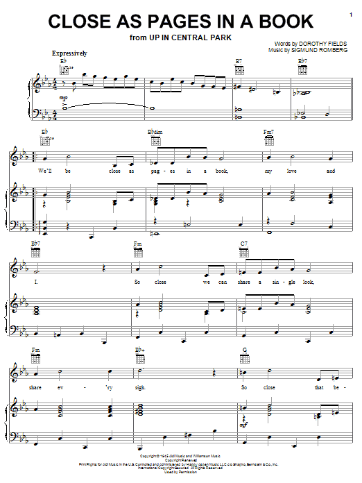 Download or print Dorothy Fields Close As Pages In A Book sheet music, chords and digital score arranged for Real Book – Melody & Chords. This Jazz score includes 1 page(s).