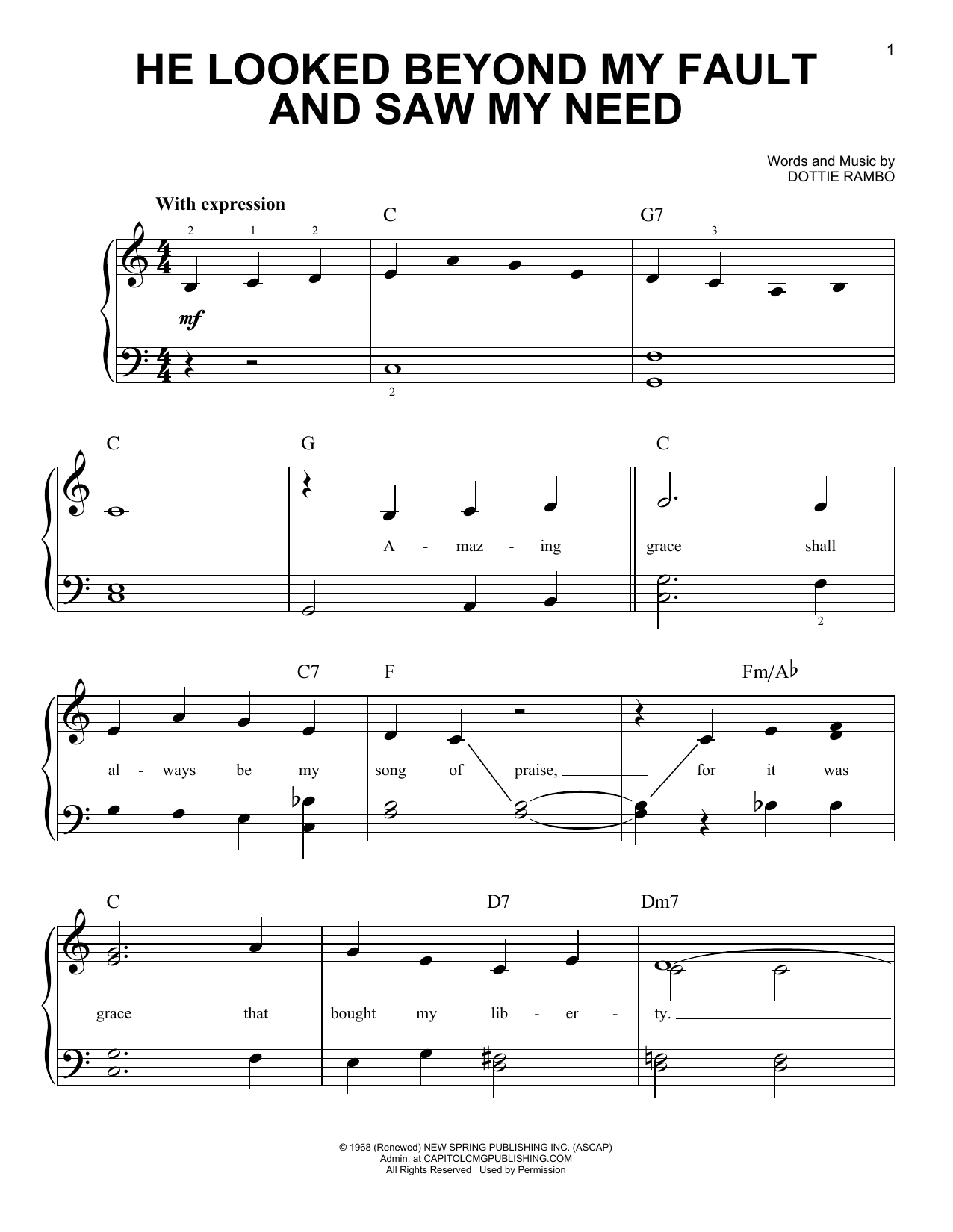 Download or print The Rambos He Looked Beyond My Fault And Saw My Need sheet music, chords and digital score arranged for Piano, Vocal & Guitar Chords (Right-Hand Melody). This Folk score includes 2 page(s).