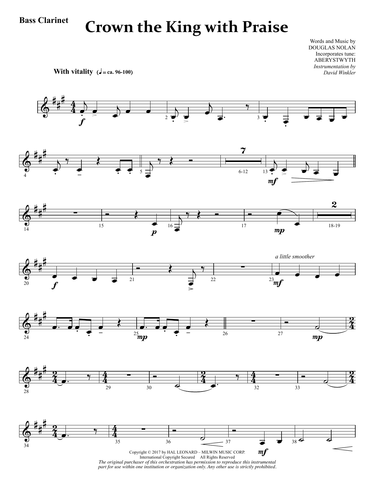Download or print Douglas Nolan Crown the King with Praise - Bass Clarinet sheet music, chords and digital score arranged for Choir Instrumental Pak. This Sacred score includes 2 page(s).