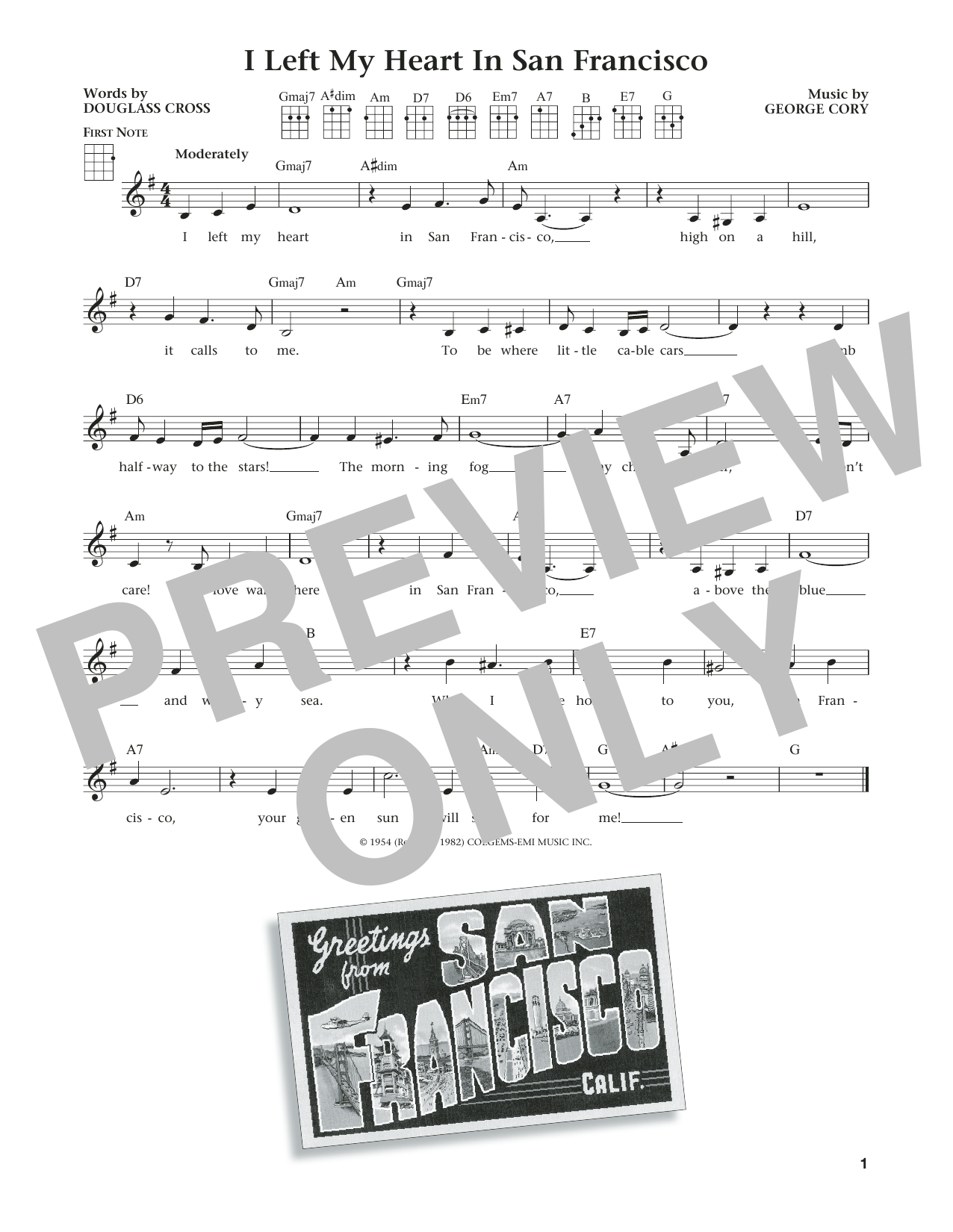 Download or print Douglass Cross I Left My Heart In San Francisco (from The Daily Ukulele) (arr. Liz and Jim Beloff) sheet music, chords and digital score arranged for Ukulele. This Jazz score includes 1 page(s).