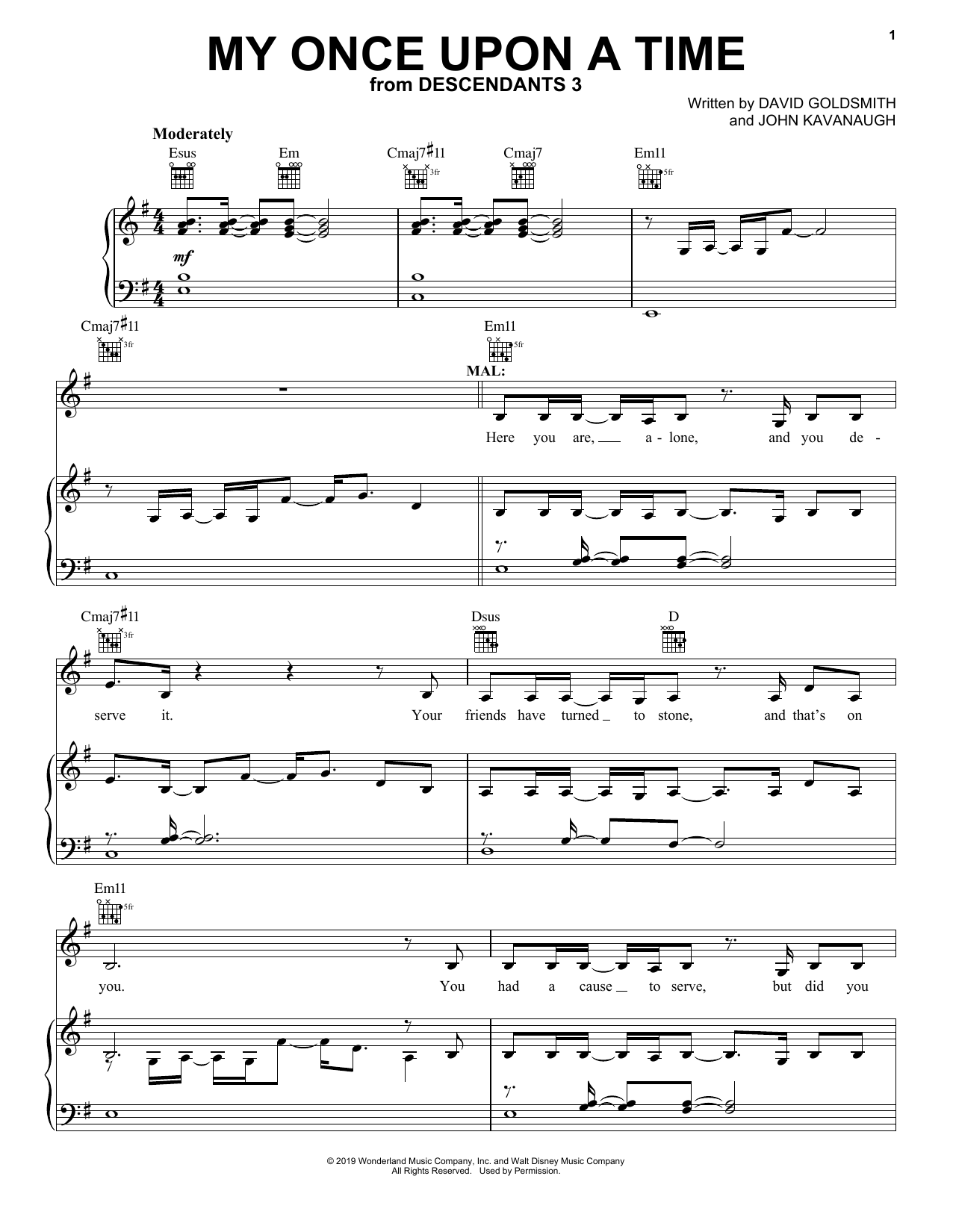 Download or print Dove Cameron My Once Upon A Time (from Disney's Descendants 3) sheet music, chords and digital score arranged for Piano, Vocal & Guitar Chords (Right-Hand Melody). This Disney score includes 10 page(s).