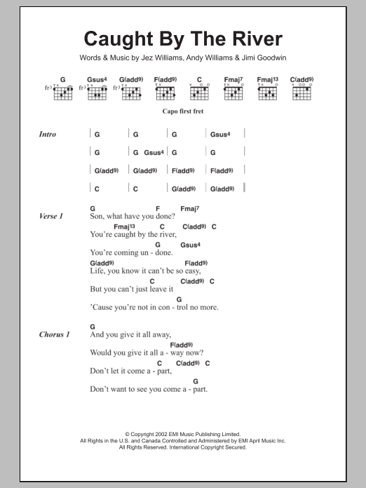 Download or print Doves Caught By The River sheet music, chords and digital score arranged for Guitar Chords/Lyrics. This Pop score includes 3 page(s).