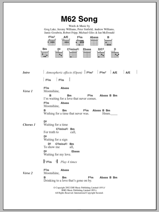 Download or print Doves M62 Song sheet music, chords and digital score arranged for Guitar Chords/Lyrics. This Rock score includes 2 page(s).