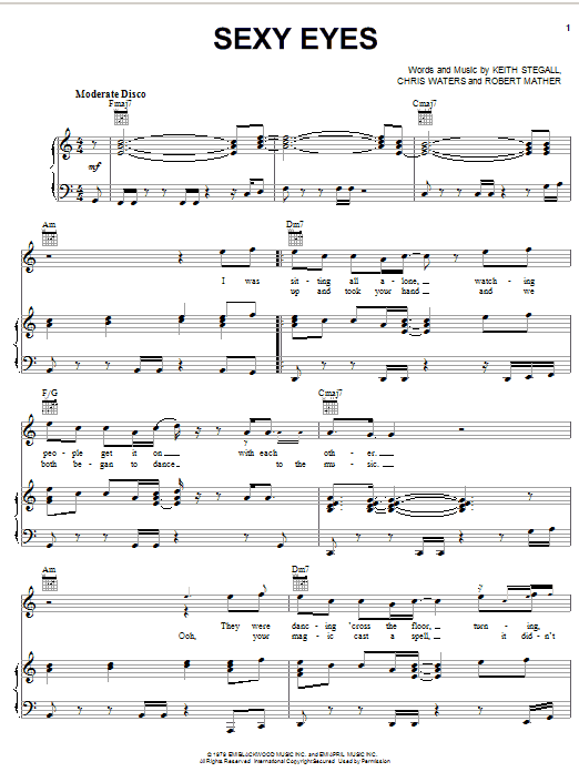 Download or print Dr. Hook Sexy Eyes sheet music, chords and digital score arranged for Piano, Vocal & Guitar Chords (Right-Hand Melody). This Love score includes 5 page(s).