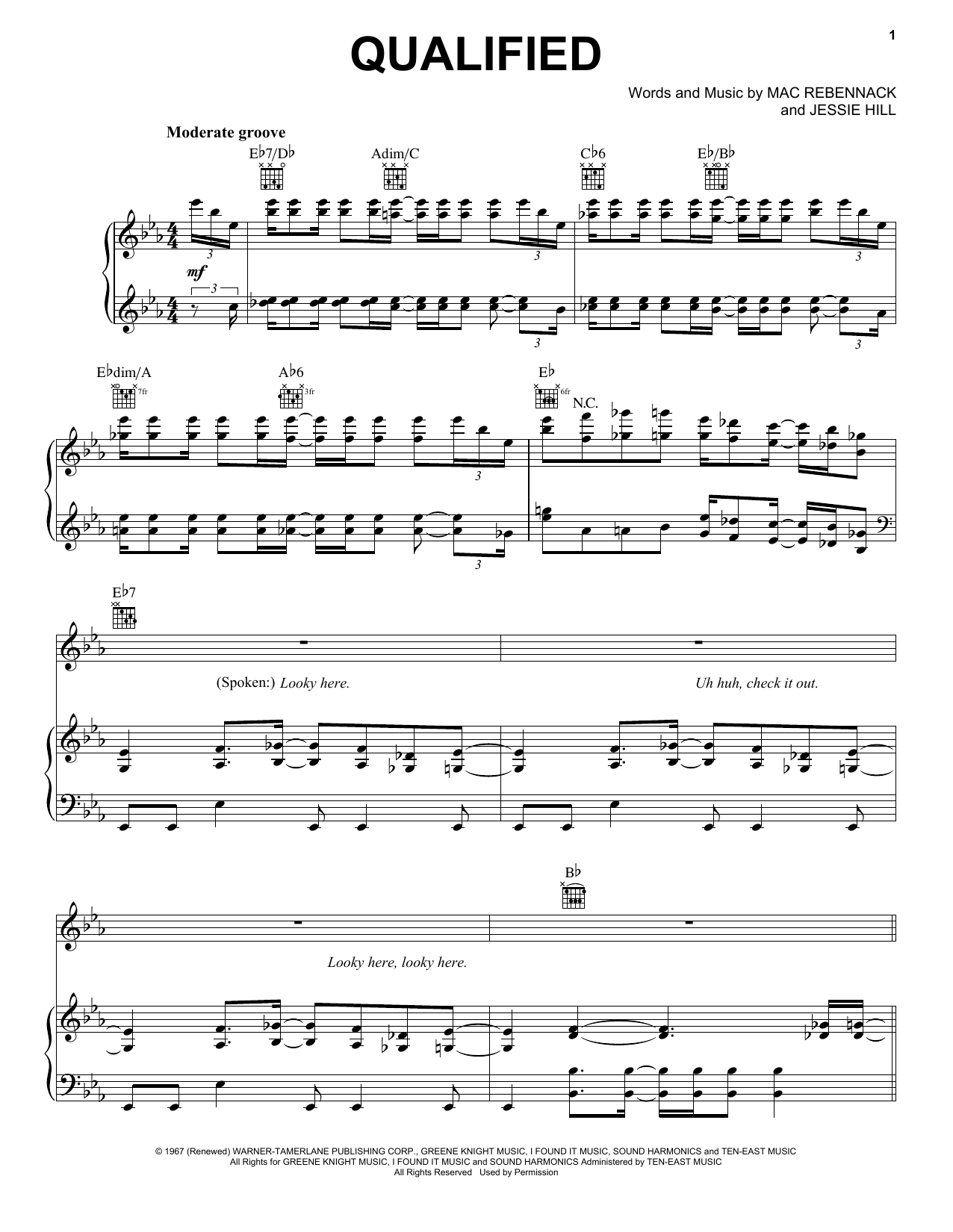 Download or print Dr. John Qualified sheet music, chords and digital score arranged for Piano, Vocal & Guitar Chords (Right-Hand Melody). This Jazz score includes 8 page(s).