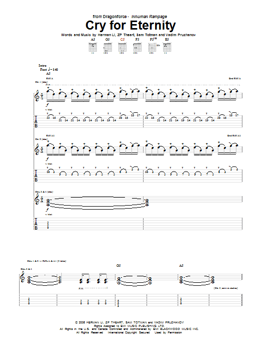 Download or print Dragonforce Cry For Eternity sheet music, chords and digital score arranged for Guitar Tab. This Metal score includes 48 page(s).