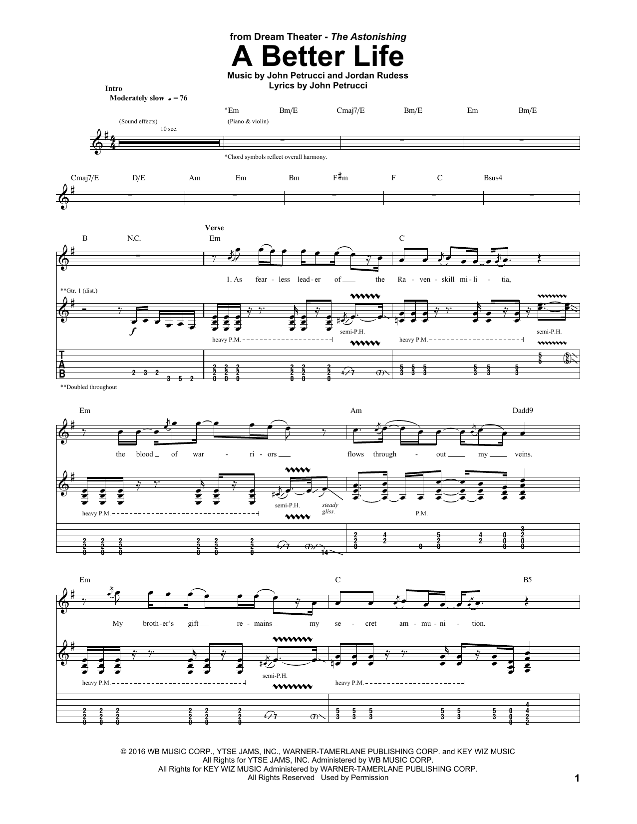 Download or print Dream Theater A Better Life sheet music, chords and digital score arranged for Guitar Tab. This Pop score includes 7 page(s).