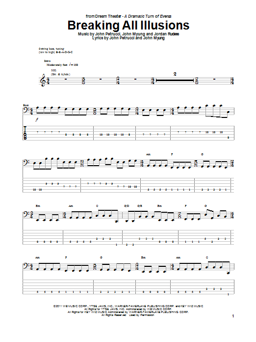 Download or print Dream Theater Breaking All Illusions sheet music, chords and digital score arranged for Bass Guitar Tab. This Pop score includes 23 page(s).