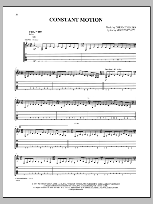 Download or print Dream Theater Constant Motion sheet music, chords and digital score arranged for Guitar Tab. This Pop score includes 13 page(s).