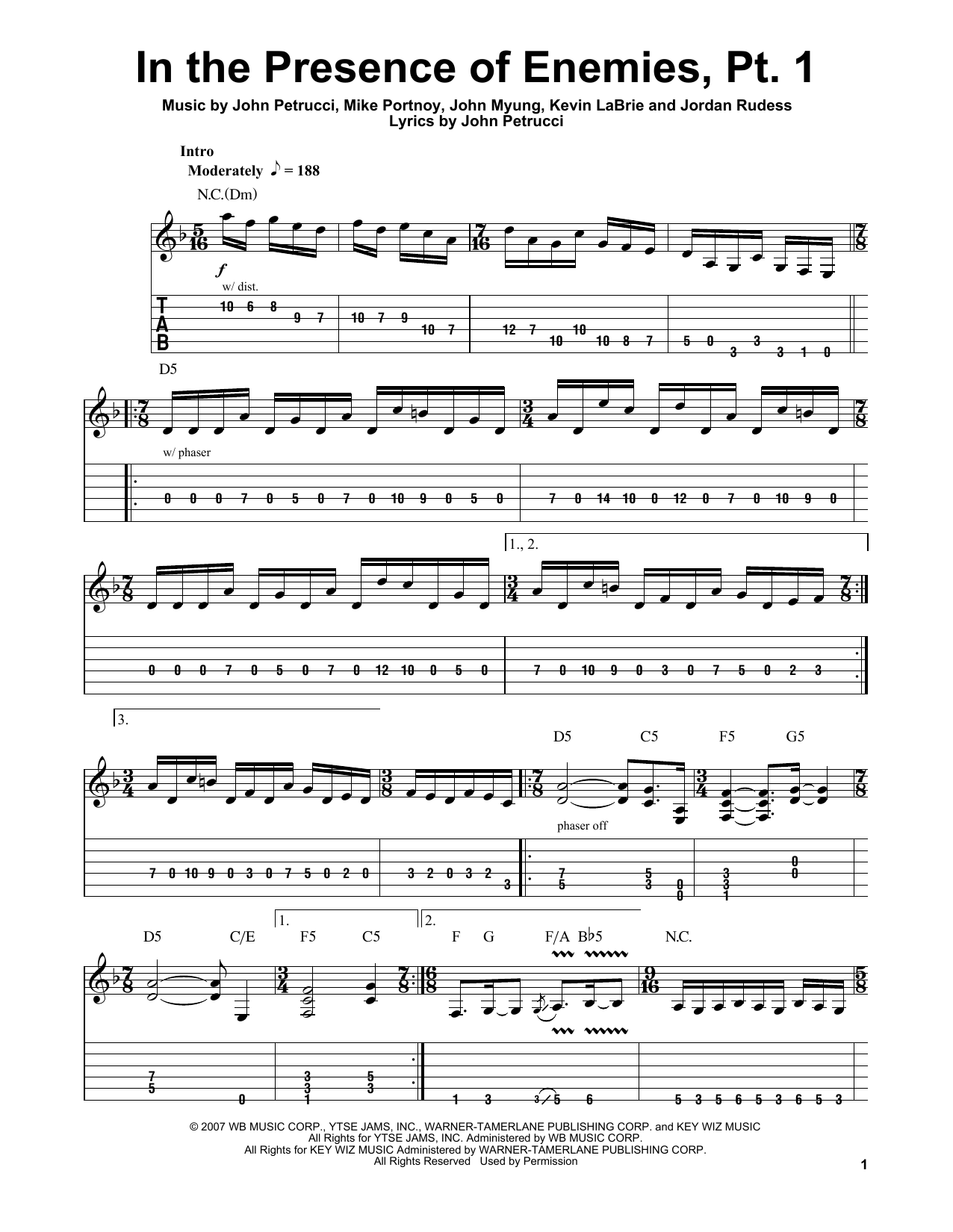 Download or print Dream Theater In The Presence Of Enemies - Part 1 sheet music, chords and digital score arranged for Piano & Vocal. This Pop score includes 17 page(s).
