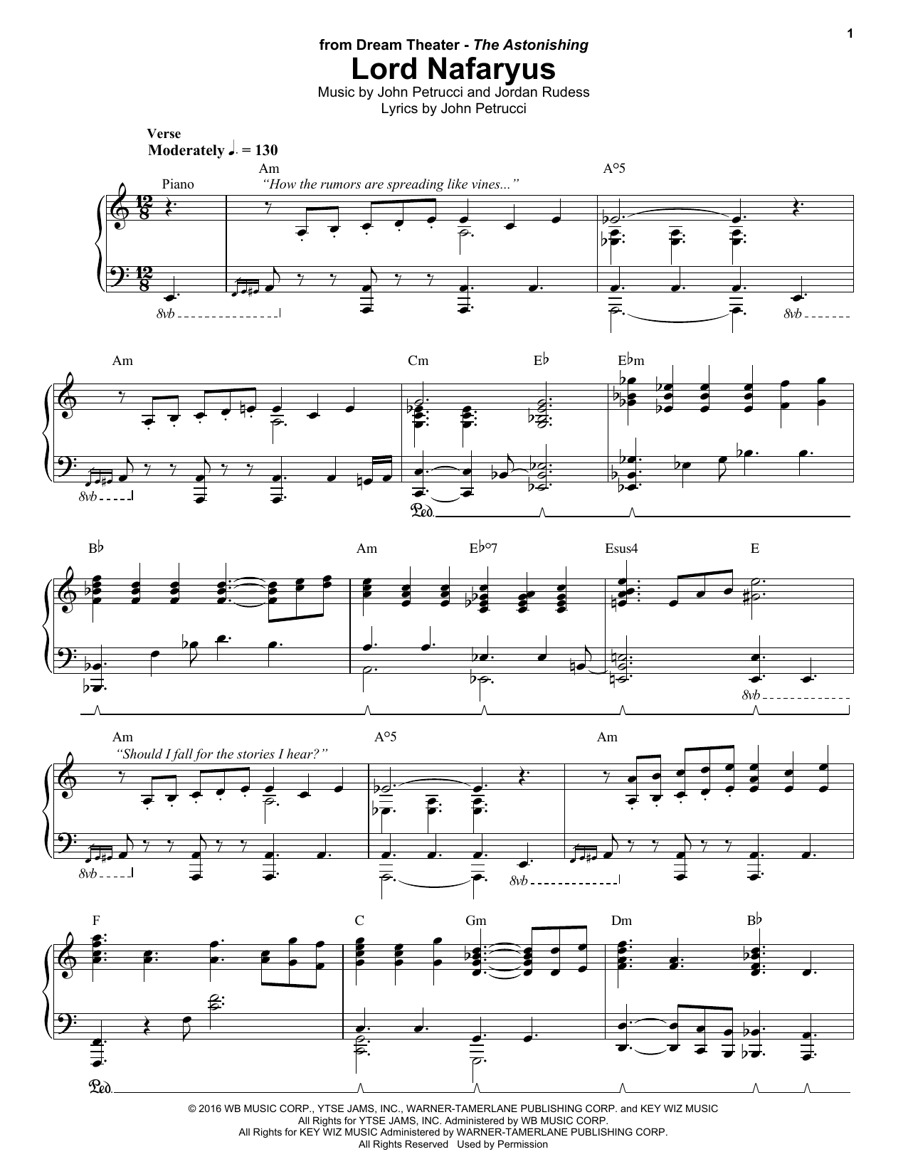 Download or print Dream Theater Lord Nafaryus sheet music, chords and digital score arranged for Keyboard Transcription. This Rock score includes 6 page(s).
