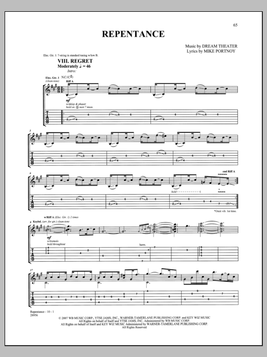 Download or print Dream Theater Repentance sheet music, chords and digital score arranged for Guitar Tab. This Pop score includes 10 page(s).