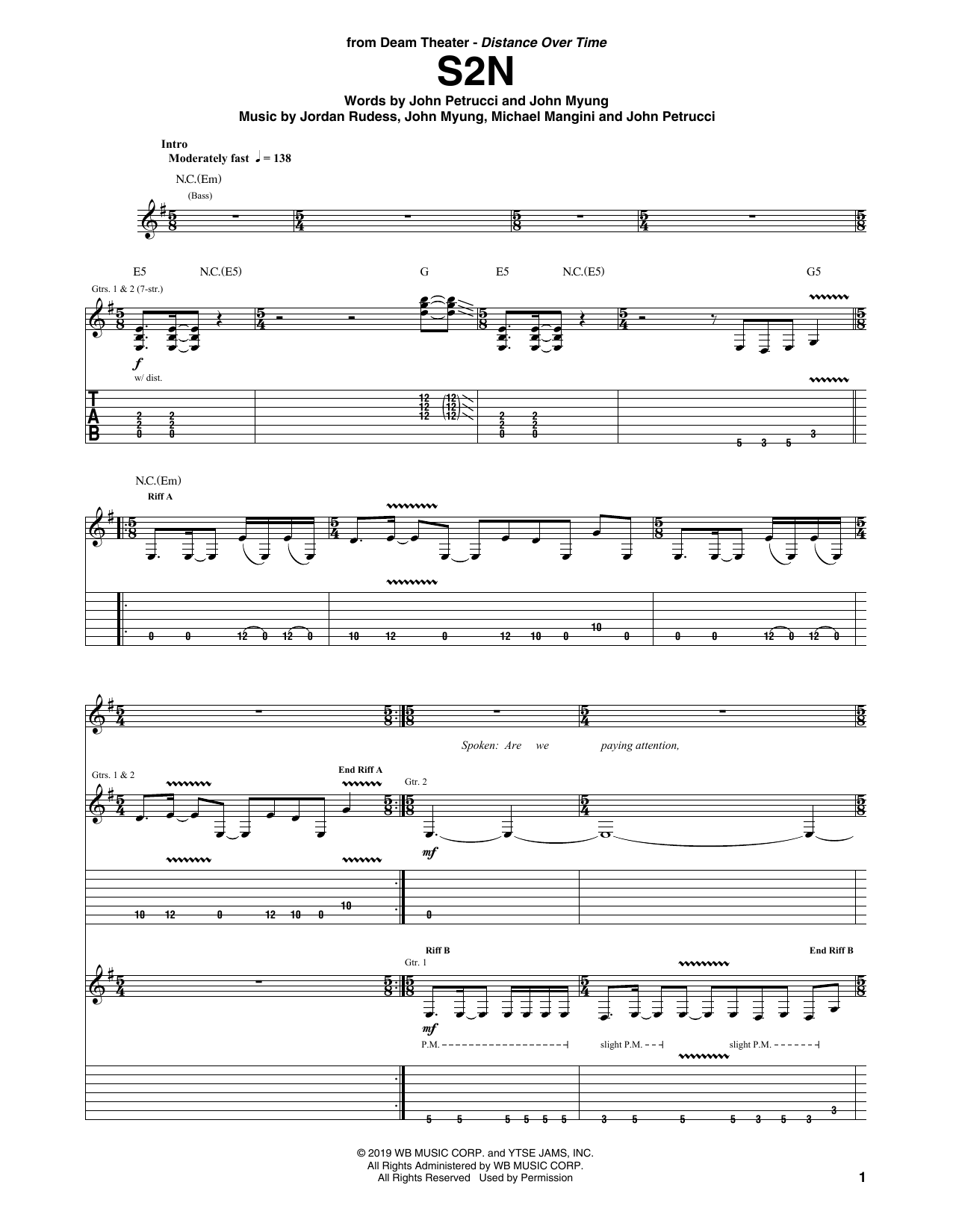 Download or print Dream Theater S2N sheet music, chords and digital score arranged for Guitar Tab. This Rock score includes 14 page(s).