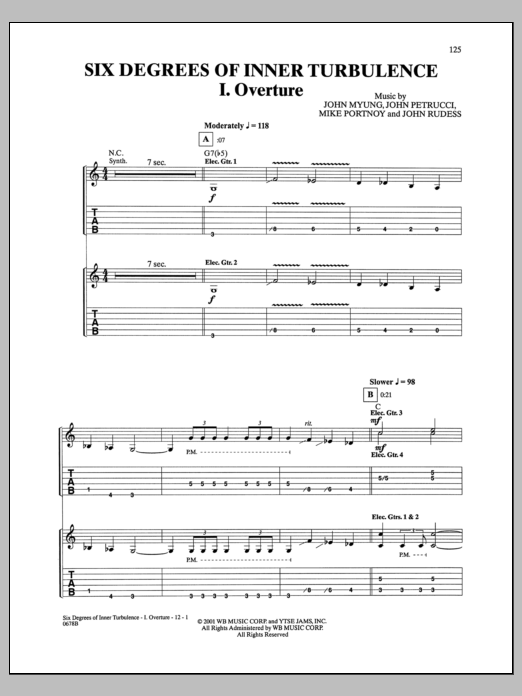 Download or print Dream Theater Six Degrees Of Inner Turbulence: I. Overture sheet music, chords and digital score arranged for Piano & Vocal. This Pop score includes 11 page(s).