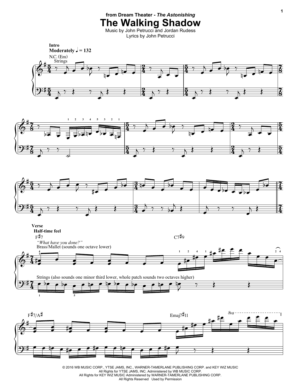Download or print Dream Theater The Walking Shadow sheet music, chords and digital score arranged for Keyboard Transcription. This Rock score includes 4 page(s).